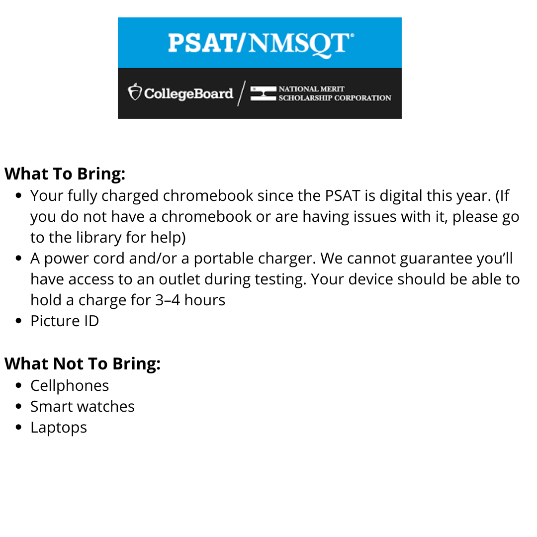 School Day PSAT Tests will be offered Fall 2026. Date & Time TBD